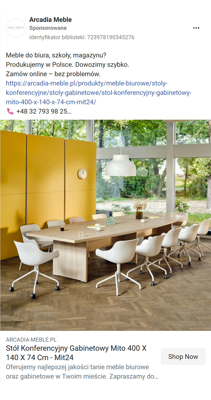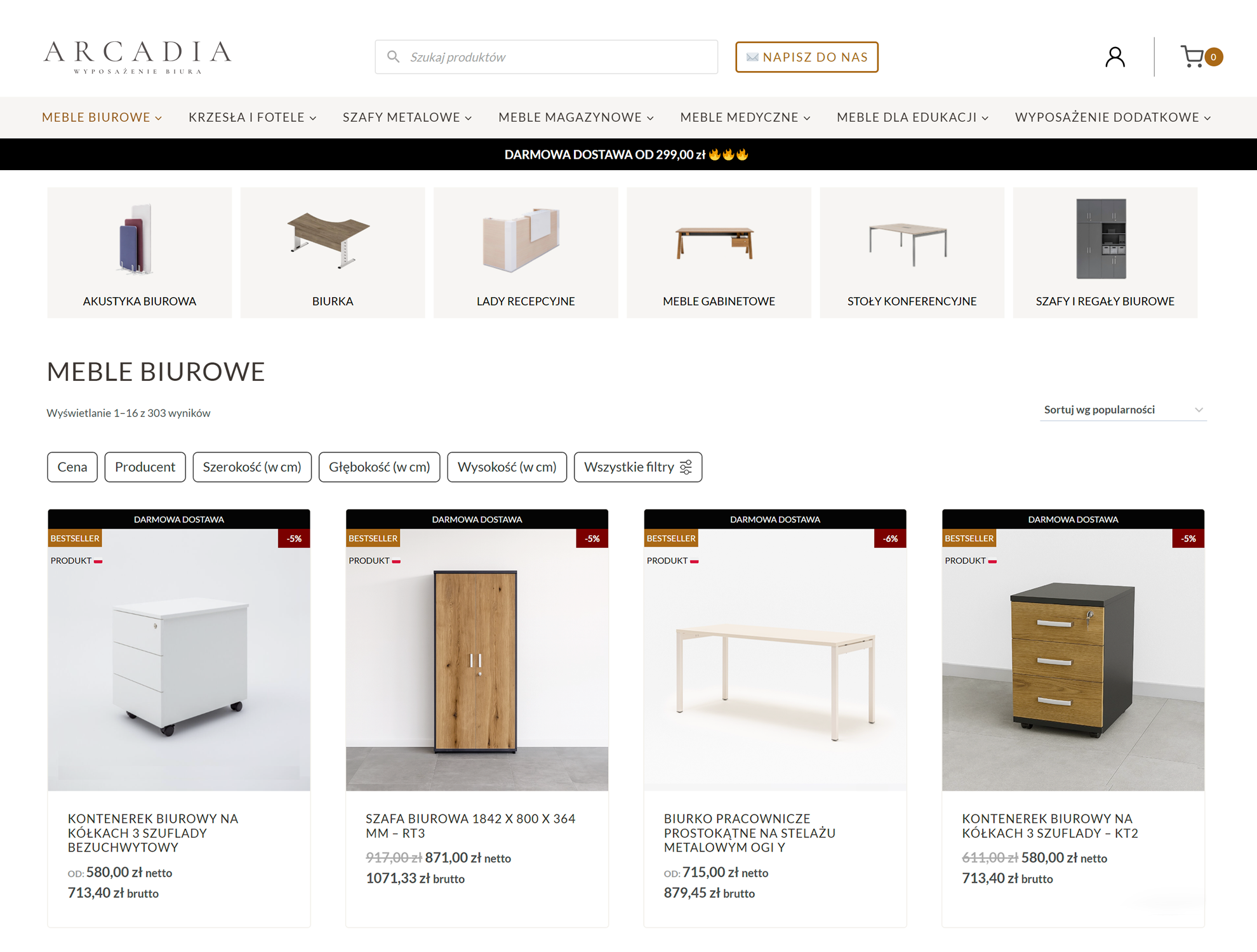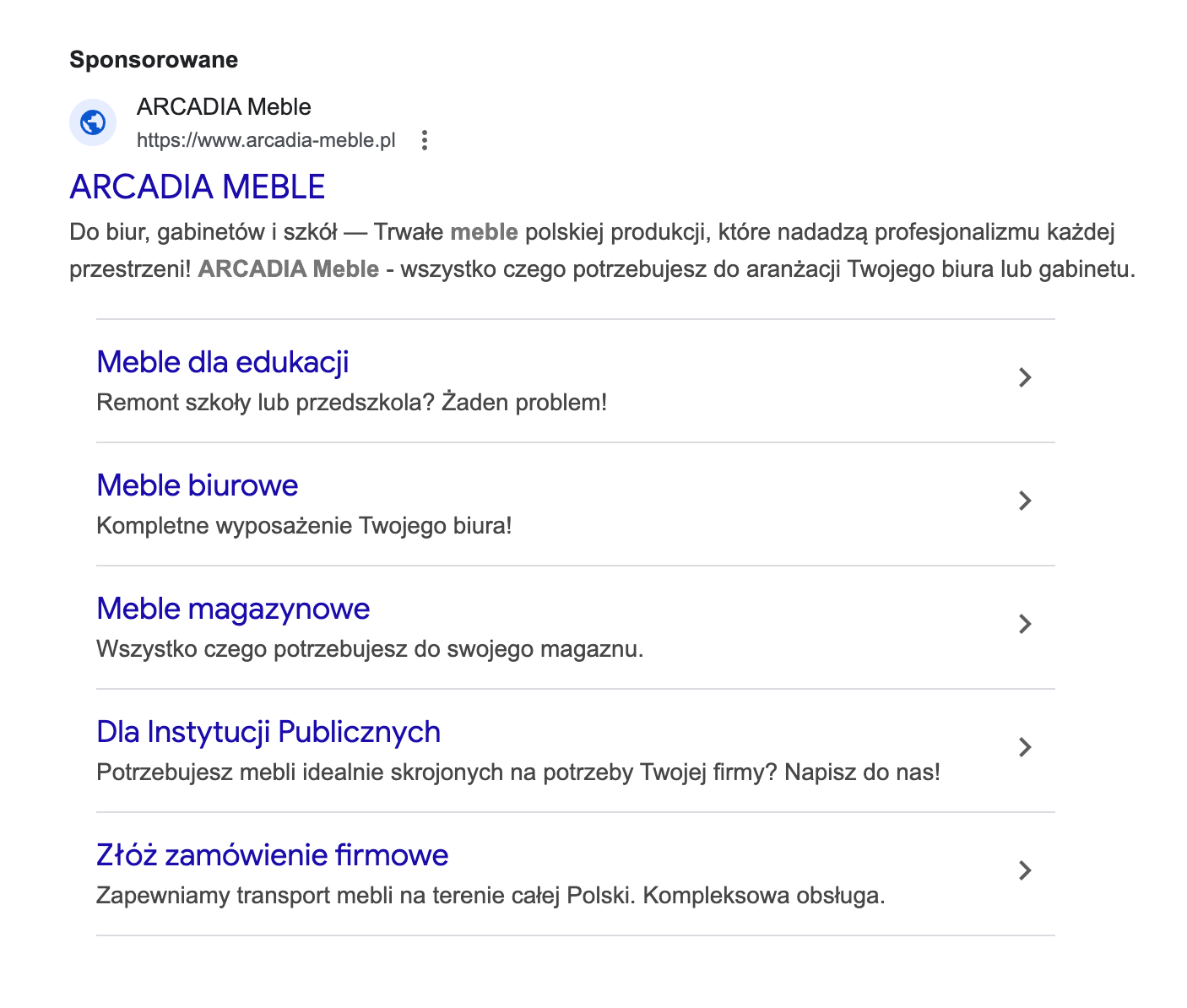 Arcadia Meble to sklep internetowy z branży meblarskiej, oferujący szeroki asortyment produktów do wyposażenia wnętrz. Firma, świadoma potencjału rynku e-commerce, aktywnie inwestowała w marketing, dążąc do dynamicznego rozwoju i budowania silnej pozycji online.