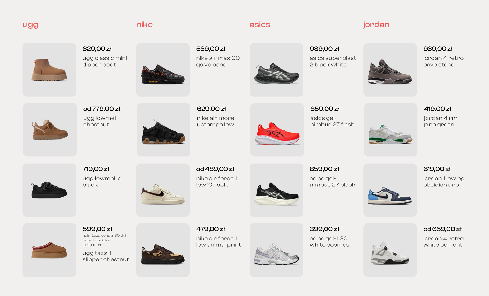 Kolejnym krokiem było objęcie użytkowników, którzy aktywnie poszukiwali konkretnych modeli i marek obuwia. W sprzedaży sneakerów standardem jest kontrola, które produkty i warianty faktycznie generują sprzedaż, a które nie wspierają wyniku i wymagają korekty.