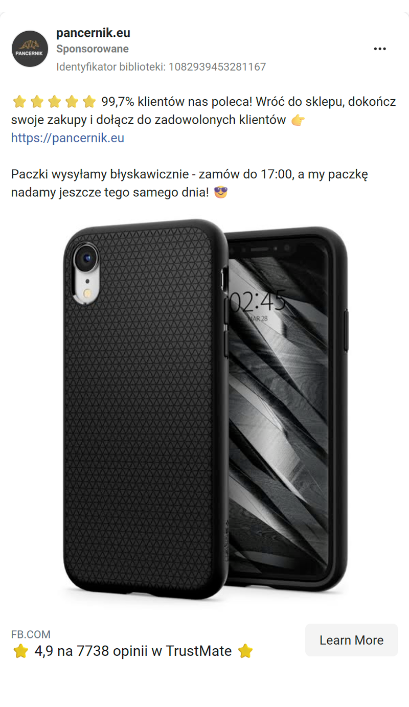 Dla Pancernik.EU osiągnęliśmy przychód liczony w milionach złotych, znacząco przekraczając cele: o 123% w Google Ads i o 218% w Meta Ads. Jednocześnie obniżyliśmy koszt pozyskania klienta – o 50% w Meta Ads i o 66% w Google Ads.