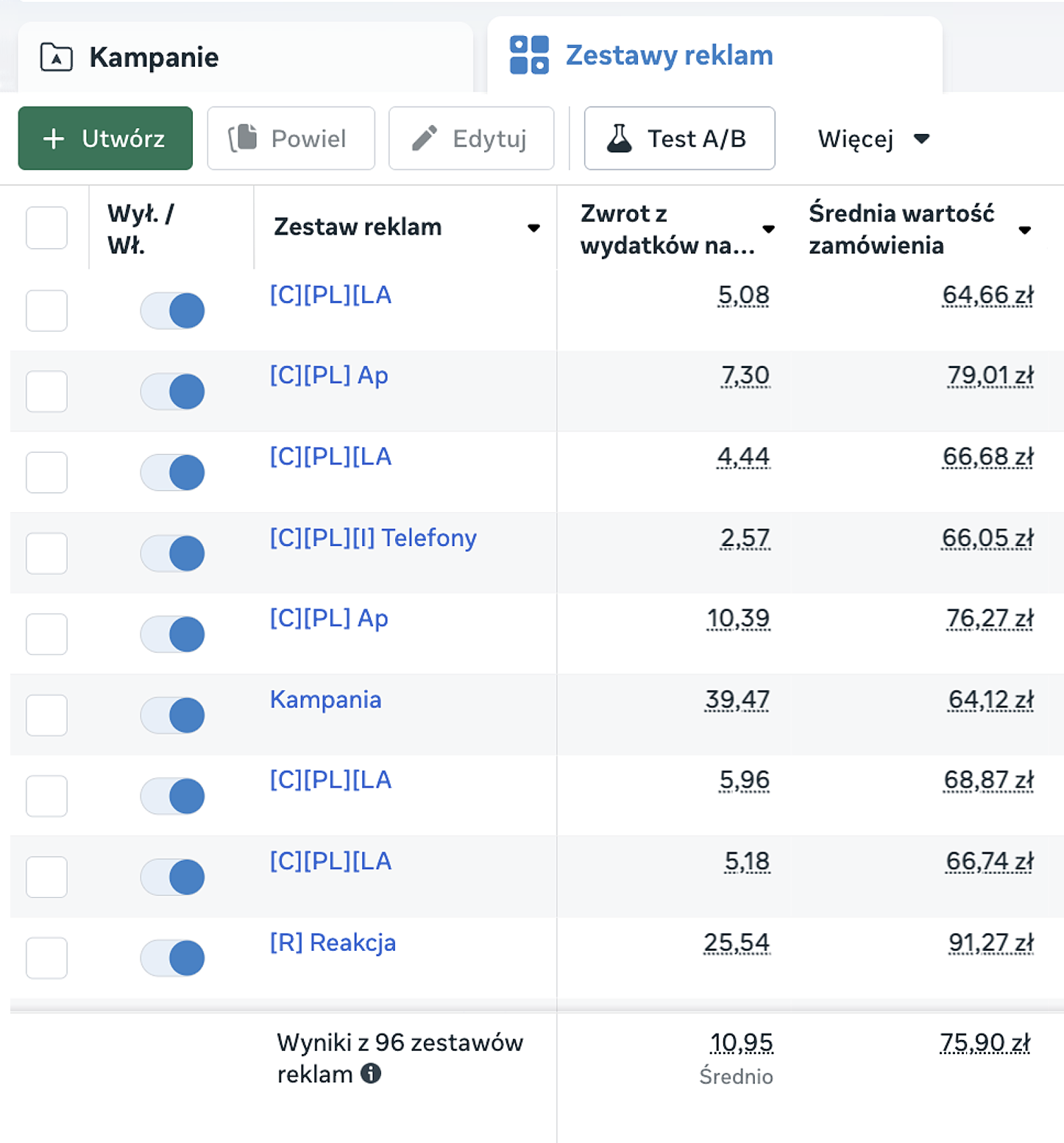 - ROAS min. 5 dla Meta Ads, 6,5-7 dla Google Ads,