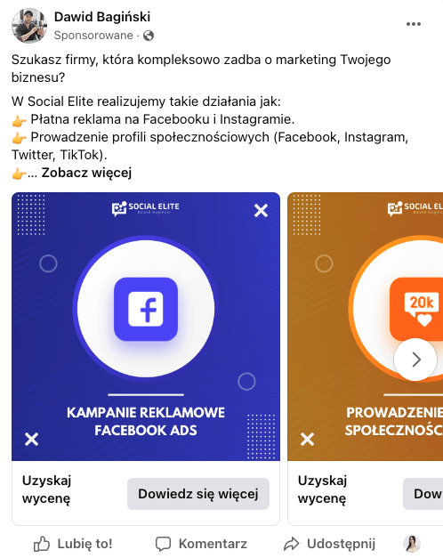- Codziennie pomagamy firmom rozwinąć sprzedaż na terenie Polski, wdrażając dedykowane kampanie Facebook Ads.