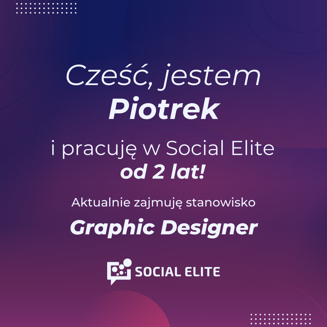 Zaczynamy serię wpisów, dzięki którym lepiej poznasz specjalistów Social Elite. Zadaliśmy im kilka pytań i dzisiaj zapraszamy do poznania bliżej naszego grafika, Piotrka.