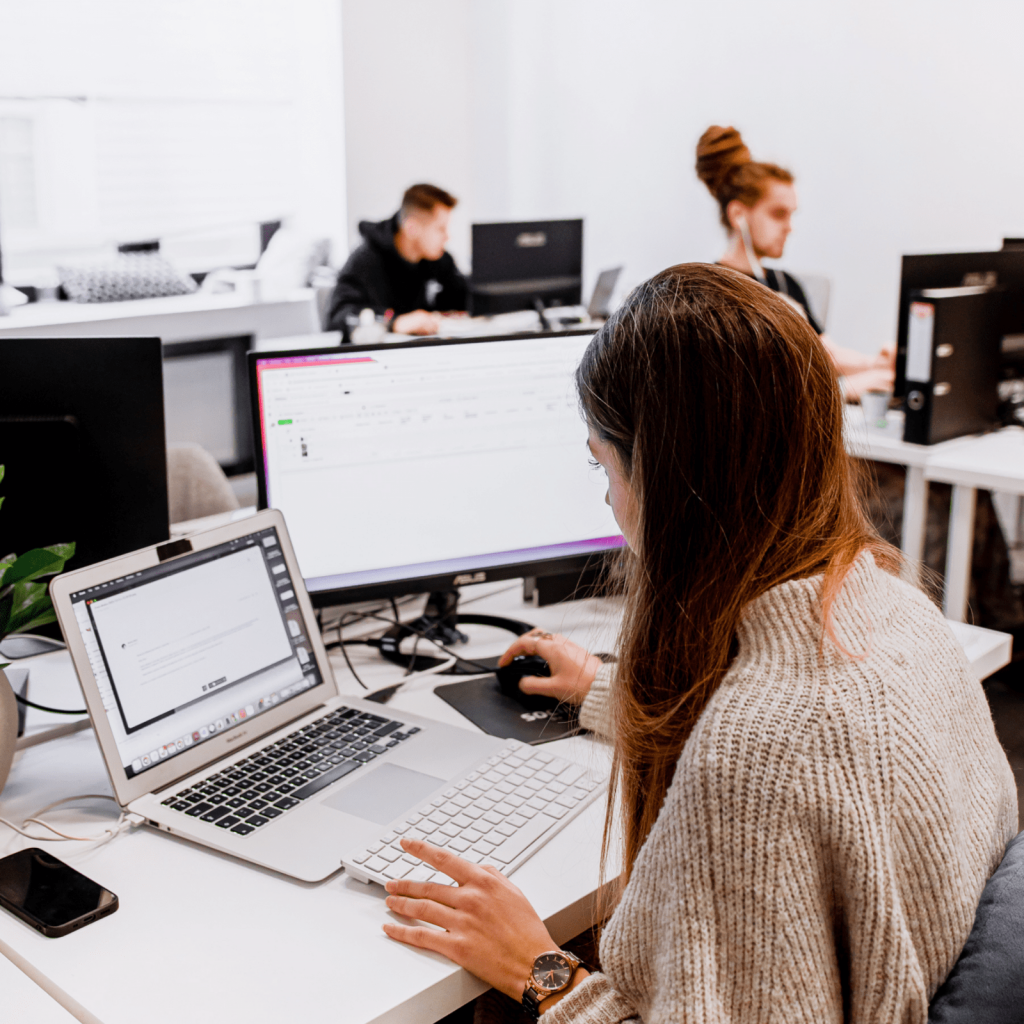 Tak samo jak to, że nawet osoba początkująca może przejść u nas konkretną ścieżkę kariery. Od stażysty, po stanowisko juniorskie, specjalistę, seniora, team lidera, aż po stanowisko menadżerskie.