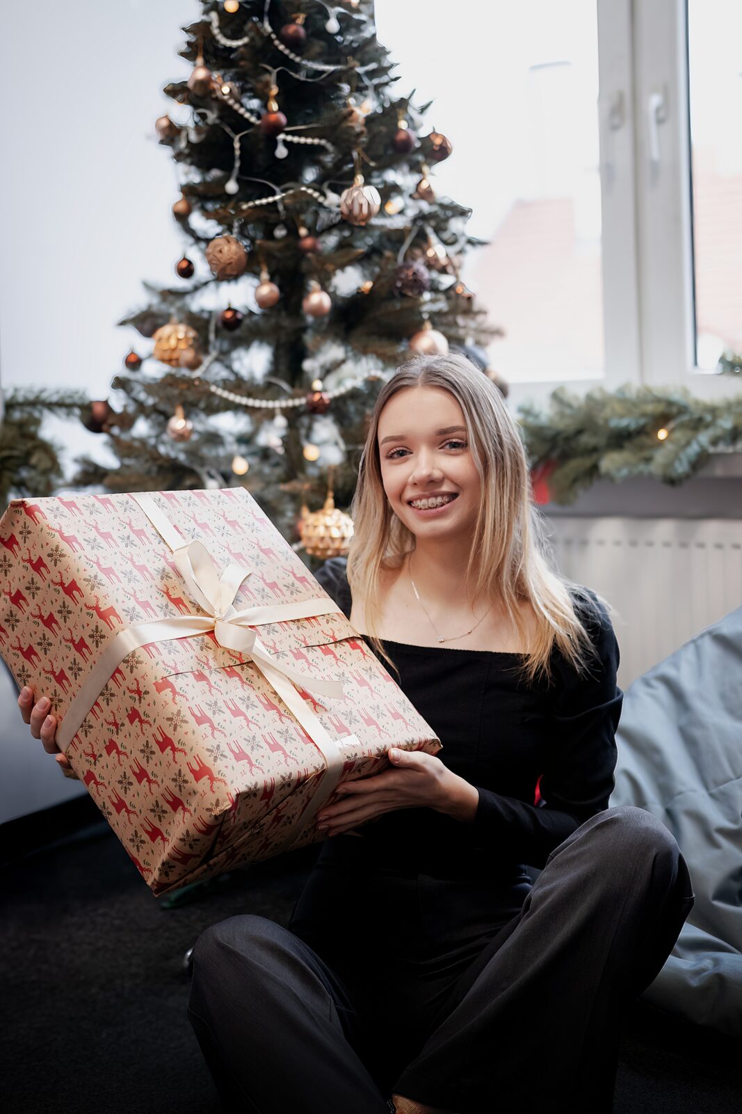 Zobacz, jaka atmosfera panuje w tym przedświątecznym okresie w naszym biurze 💫. Pojawiły się dekoracje, świąteczne stroje i oczywiście... stanęła choinka! Jest po prostu magicznie 🌟.